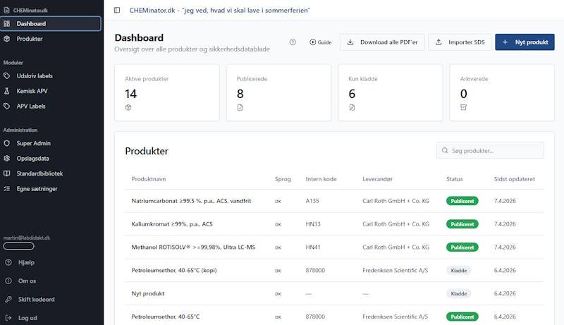 Book en gratis demo — send en mail til info@isikkerhed.dk med emnelinjen “Book demo — Cheminator”.