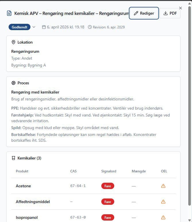 - Opfyld Arbejdstilsynets krav til kemisk APV